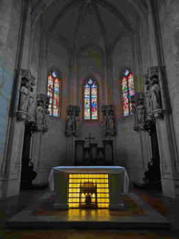 chapelles ornées, et ses magnifiques vitraux. C’est un lieu de culte central